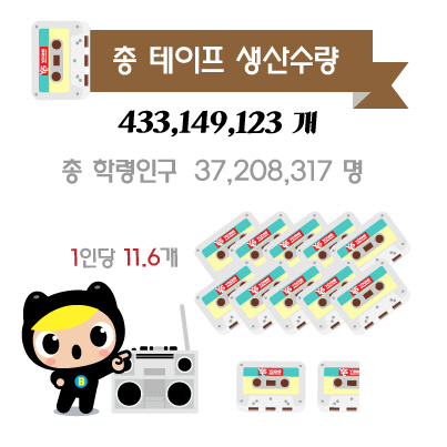 윤선생이 1980년 회사 설립 이후부터 지난해까지 34년 동안 제작한 카세트 테이프는 4억3000만 개에 달한다. 전체 테이프 시간은 총 3억6000만 시간이고, 날짜로 환산할 경우 4만1200년에 이른다. 전체 테이프의 릴 길이를 이으면 약 2600만㎞로 지구를 648번 감을 수 있는 길이이고 지구에서 달까지 34번 왕복 가능한 거리다. 카세트 테이프를 가로로 연결하면 4만3000㎞로 한반도의 39배에 가깝고 지구를 한 바퀴 돌 수 있는 길이다. 카세트 테이프를 쌓으면 높이가 약 520만m로 남산타워의 2만배 이상이고, 에베레스트산의 592배에 이른다. 모든 카세트 테이프를 바닥에 펼쳐놓은 면적은 2.76㎢로 축구장의 376배, 여의도 면적(2.9㎢)과 유사하다.