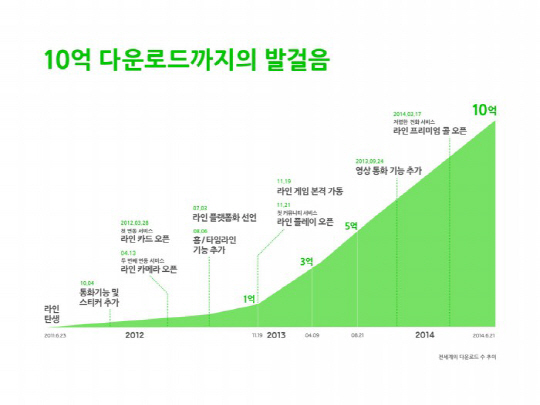 이후 10월에 다양한 스티커와 무료 통화 등 실질적으로 활용할 수 있는 다양한 기능을 추가하며, 일본·대만·태국 등에서 '국민 모바일 메신저'로 등극했다. 현재 라인은 전 세계 230개 국가에서 사용되며, 총4억 7천만 명 이상의 가입자를 확보했다.