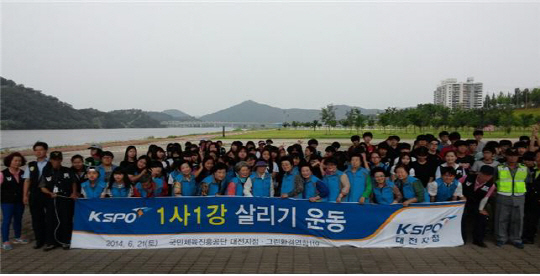 공단 경륜경정사업본부 대전스피존은 지난 21일 공주 금강천변에서 '1사1강 살리기 운동'의 일환으로 환경캠페인을 실시했다.