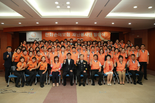 한화손해보험(대표이사 박윤식)은 25일 오전 서울 서소문사옥에서 '한화손해보험 재난봉사단' 발대식을 갖고, 앞으로 국민들의 안전의식을 고취하고 재난사고 발생 시에는 피해주민들을 위한 생활안정 지원 활동에 본격적으로 나서게 된다.