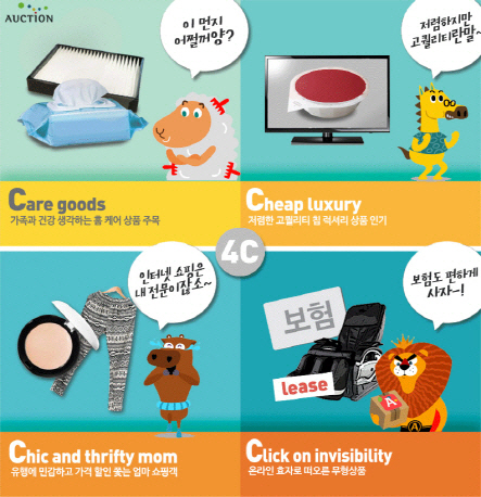옥션은 상반기 히트상품을 보면 올 하반기에도 불황과 이상기후의 영향으로 당장의 사치품보다는 미래를 내다보는(foresee) 가치소비가 예상된다고 밝혔다.