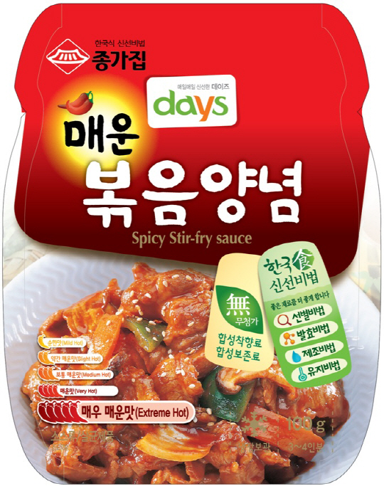 대상FNF 종가집의 '데이즈 매운 볶음 양념'은 깊은 풍미의 매운 맛이 특징인 한식 양념제품이다. 입 안 가득 감칠 맛을 느낄 수 있는 진하게 매콤한 맛으로 오징어볶음, 닭볶음 등 한식 요리 뿐 아니라 순대볶음이나 닭발요리 등 간단한 안주나 간식도 쉽게 만들 수 있다. 이 제품은 한국 매운 맛 기준으로 아주 매운 맛에 속하는 제품으로 화끈한 매운 맛을 즐길 수 있는 것이 특징이다.