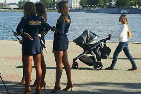 사진 속 러시아 여경들은 긴 머리에 짧은 미니스커트-하이힐을 착용했다. 특히 몸에 딱 달라붙는 제복으로 굴곡진 몸매를 과시하며 보는 이들의 이목을 집중시킨다.