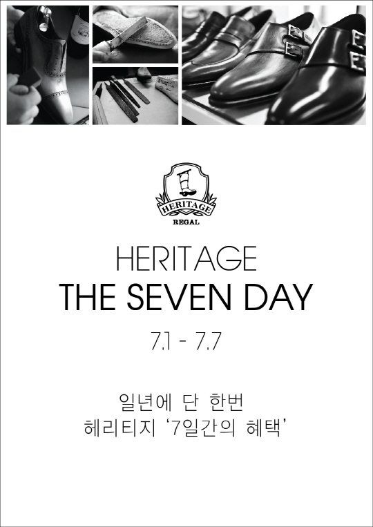 금강제화의 최고급 남성구두 편집샵 헤리티지가 1년에 단 한번 20% 세일하는 '세븐 데이' 행사를 실시한다.