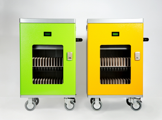 최근 출시된 앱코의 스마트충전함 '패드뱅크'는 초·중·고등학교 학생들이 수업용으로 사용하는 태블릿PC(스마트패드)를 최대 48대까지 자동으로 충전해주며, 특히 기존 수업준비를 위해 교사들이 다수의 태블릿PC에 대해 한 대씩 몇 시간에 걸쳐 어플리케이션을 설치하고 자료를 복사하는 등의 번거로움을 덜어 줄 수 있도록 태블릿PC를 통합하여 관리해 주는 솔루션을 탑재해 교사들의 업무 경감 및 수업 준비를 효과적으로 할 수 있도록 도와준다.