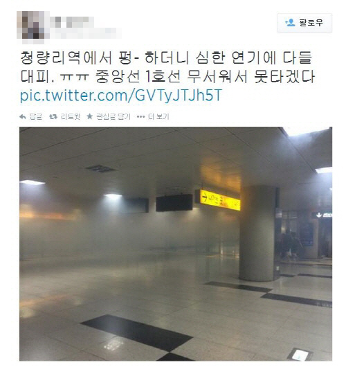청량리역 화재, '펑'하는 소리와 함께 연기발생...'승객들 대피소동' <사진=SNS @spring_*******>