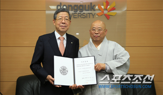 특히 '인재를 양성하지 않고는 불교 미래도 보장할 수 없다'는 스님은 꾸준히 동국대에 교육기금을 기부해 누적기부금이 5억이나 된다, 동국대는 이러한 나눔 정신을 기리기 위해 2010년 동국대 문화관에 스님의 법명을 딴 '학명세미나실'을 개원하기도 했다.