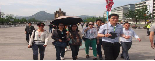 | 유비체크 수신기로 가이드가 관광객을 인솔하고 있는 모습. |