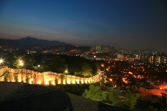 한양도성은 북악산(백악), 낙산, 남산, 인왕산의 능선을 따라 총 18.6km에 이른다. 이들 네 곳의 산은 모두 서울 도심의 화려한 야경을 감상하기에 더할 나위 없는 곳이다. 그중 흥인지문에서 혜화문으로 이어지는 한양도성 낙산 구간은 남녀노소가 쉽게 산책할 수 있는 곳으로 인기 코스다. 낙산공원은 북악산과 북한산 능선으로 넘어가는 일몰과 서울 도심 야경을 한꺼번에 만날 수 있어 밤이면 나들객이 줄지어 찾는다. 한낮의 더위를 뒤로하고 시원한 바람 속에 맞는 야경 감상은 근사한 피서에 다름없다.