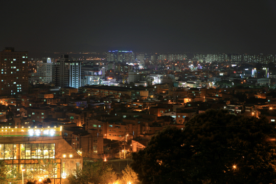 통합 청주시의 저녁 풍경 전망대 '수암골 전망대'(충북 청주시 상당구 수암로)