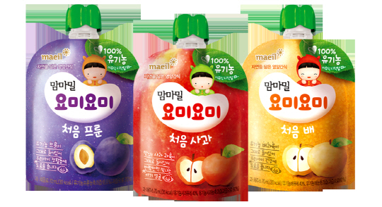 매일유업의 유아식 브랜드 마마밀 요미요미가 100% 과일로 만든 '맘마밀 요미요미 처음과일' 3종을 출시했다. 사진제공=매일유업