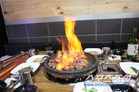 또한 육즙이 빠져 나오는 것을 막기 위해 숯불이 아닌 돌판에서 직화로 빠른 시간에 구워낸다. 이에 이 대표는 "고기는 질도 중요하지만 굽는 방법도 매우 중요하다. 굽는 방법에 따라 맛의 차이가 확연히 다르기 때문에 돌판 직화를 고집하고 있고, 한우 특유의 잡내를 제거하고 육질이 질겨지는 것을 막기 위해 '불쇼'를 하는 것이다. 볼거리 제공뿐만 아니라 더 좋은 맛을 내기 위한 '불쇼'라는 것을 알아주셨으면 좋겠다"고 전했다.