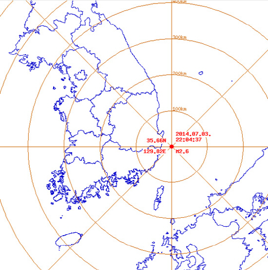 '울산 지진, 동북쪽 40km 해역서 규모 2.6 지진'