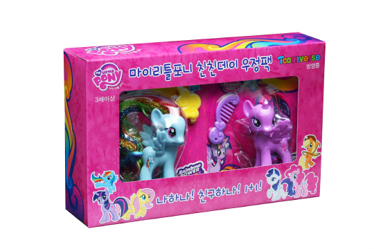 이에 따라 투니버스 홈페이지(http://www.tooniland.com/)에서는 '마이 리틀 포니'의 주인공 여섯 포니 중 나의 친구와 어울리는 포니를 선택하고 이유를 댓글로 남기면 추첨을 통해 7가지 포니 제품이 포함된 '친친 데이 팩'을 제공하는 온라인 이벤트를 7월 13일까지 진행한다. 이와 함께 5월 31일부터 오는 11월까지 렛츠런파크 서울 가족공원 잔디광장에서 개최되는 '가족과 함께하는2014 투니페스티벌'에도 '마이 리틀 포니' 대형 동상 포토존을 설치하는 등 포니를 만날 수 있는 기회를 제공한다.