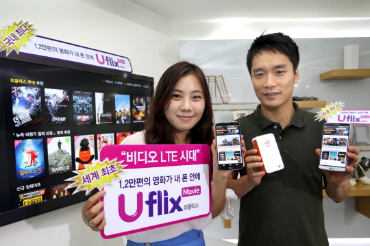 지난달 출시한 유플릭스 무비는 영화는 물론 미드 등의 해외 TV시리즈물까지 국내 최다인 1만 2천 편의 주문형비디오(VOD)를 월 7000원에 무제한으로 시청할 수 있으며, 모바일과 PC(www.uflix.co.kr)에서 영화를 감상할 수 있는 월 정액제에 2900원만 추가하면 U+ TV G에서도 보던 화면 그대로를 이어 볼 수 있다.