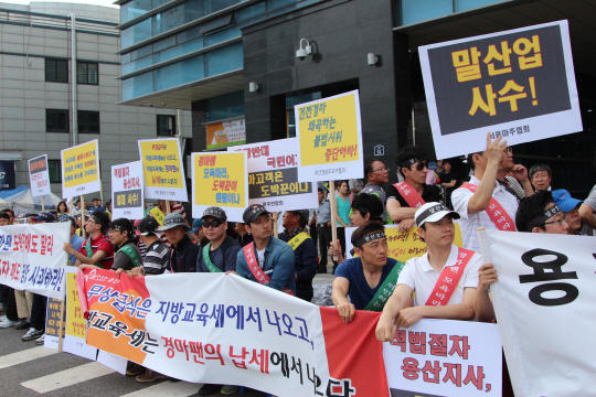 한국농업경영인중앙연합회(회장 김준봉), 축산관련단체협의회(회장 이창호) 등 농축산연합회단체와 주민대책상생연합회(회장 정만기) 및 지역상가연합회 등은 6일 오전 8시부터 한국마사회의 신용산 장외의 조속한 정상운영을 촉구하는 집회를 개최했다.