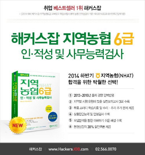 원스탑 취업포털 해커스잡(www.HackersJOB.com)이 10월 말 지역농협 공채를 대비한 '해커스잡 6급 인적성 및 사무능력검사' 교재를 출간한다.