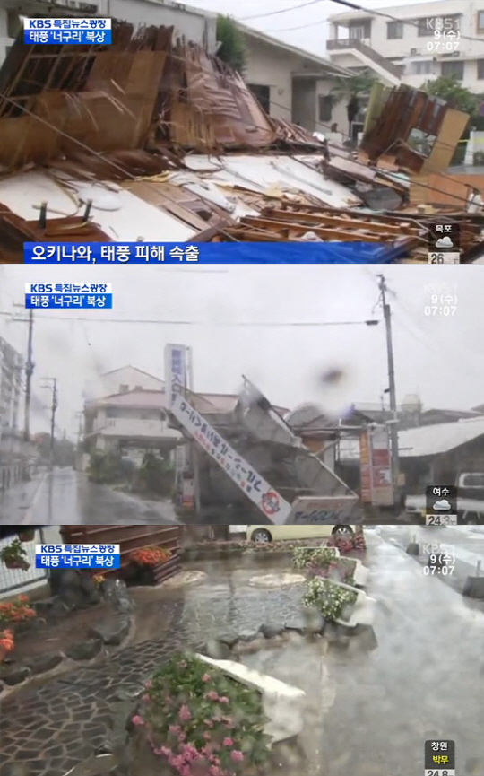 일본 기상청은 태풍 너구리가 9일 오전 7시 오키나와(沖繩) 아마미(奄美) 북동쪽의 동중국해에서 시속 20㎞ 속도로 북상하고 있다고 발표했다. 중심 기압은 960헥토파스칼(hPa), 중심 부근의 최대 풍속은 초속 35㎧로 각각 측정된 매우 강한 중형급 태풍이다고 기상청은 전했다.