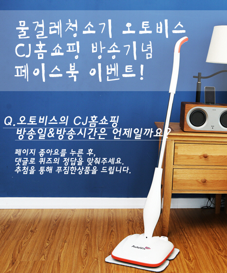 자동 물걸레 청소기 오토비스 (경성AutoVis㈜, 대표이사 최태웅)가 CJ홈쇼핑 방송 론칭을 기념해 자사 공식 페이스북(https://www.facebook.com/ksautovis)에서 이벤트를 진행한다.