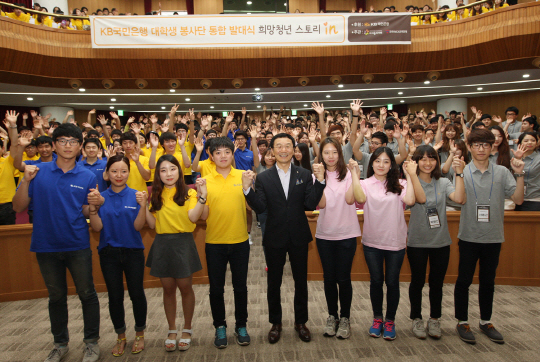 KB국민은행(www.kbstar.com)은 10일 일산연수원 대강당에서 대학생 봉사단원 380명(연간 760명)이 참석한 가운데 통합 발대식'KB국민은행 희망청년 스토리 in'을 개최했다.
