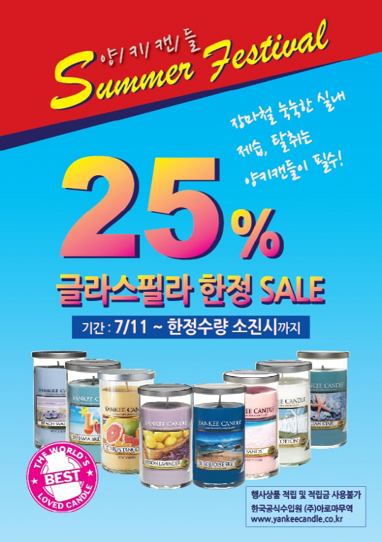 한편, 양키캔들은 지난 6월 브랜드 론칭 후 처음으로 자캔들 품목 25% 할인 행사를 진행하여 매출이 222% 증가하는 등 폭발적인 고객 호응을 얻고 있다. 또한 아로마무역은 8월 7일 서울 종로구 종각역에 양키캔들 직영점을 오픈할 예정이다.