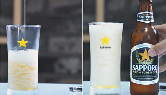 한편, 삿포로 맥주는 부드러운 거품이 맥주 위에 소복한 눈이 내려앉은 듯한 부드러운 느낌을 살린 '사르르 삿포로'로 적극적인 마케팅을 펼치고 있는 중이다.