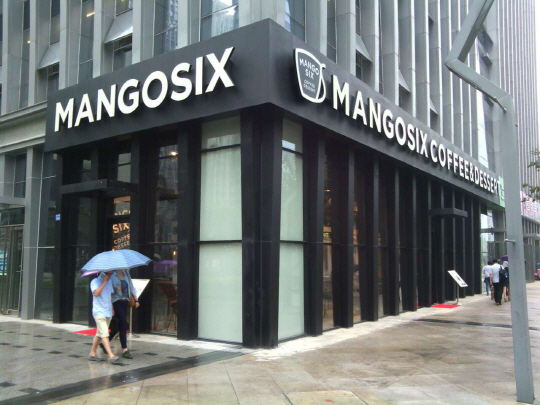 최근 문 연 망고식스 난징 1호점은 완따백화점, 힐튼호텔 등이 입점한 상가 1층에 위치해 있으며 주변에 고급 아파트 단지가 자리잡고 있다.