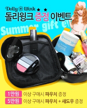화장품 전문업체 원페이스(www.oneface.co.kr, 대표 김용회)가 휴가시즌을 맞아 돌리윙크 제품을 구입하는 고객에게 휴가지에서 유용하게 사용할 수 있는 파우치·아이섀도를 무료 제공한다.