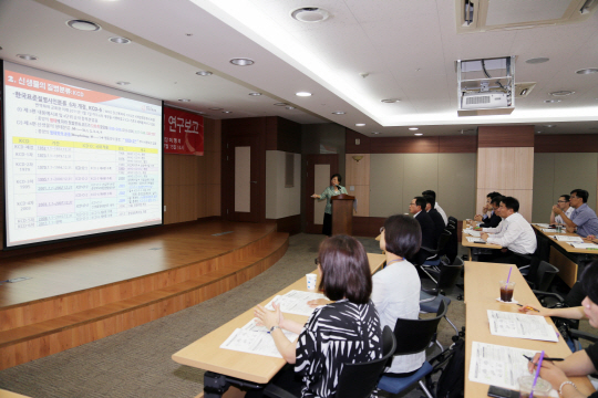 한화손해보험(대표 박윤식)은 15일 오후 서울 서초사옥 대강당에서 '2014 유의암 6종에 관한 보험의학적 연구 보고회'를 갖고 불명확한 약관내용과 의료진단에 대한 고찰과 보험의료 매뉴얼 제작 등 가치공유를 위한 연구보고회를 가졌다.