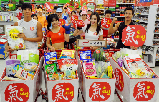 홈플러스는 오는 17일부터 8월 13일까지 한달 동안 역대 최대 규모 할인 행사인 '대한민국 기(氣) 세일'을 실시키로 했다. 홈플러스는 신선 및 가공식품·생활용품·패션·가전 등 전 부문에 걸쳐 4000억원 규모, 1만여개 품목을 최대 70% 할인된 가격에 판매하는 파격적인 마케팅을 진행한다. 행사를 시작하는 첫 주(17∼23일)엔 생수·고추장·참기름·현미·세제·화장지·샴푸 등 500개 핵심 생필품을 원플러스원(1+1) 행사와 함께 50% 할인 판매한다. 또 전국 139개 직영매장과 쇼핑몰 내 푸드코트, 홈플러스 익스프레스, 인터넷쇼핑몰, 모바일과 SNS 등 전 유통채널에서 동시에 진행할 정도로 전방위적으로 진행한다.