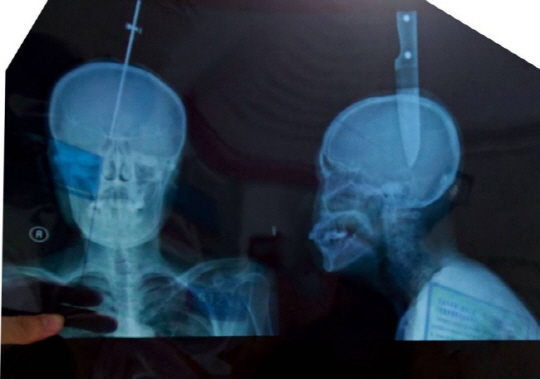 머리에 칼이 관통당한 여성이 기적적으로 생존했다.