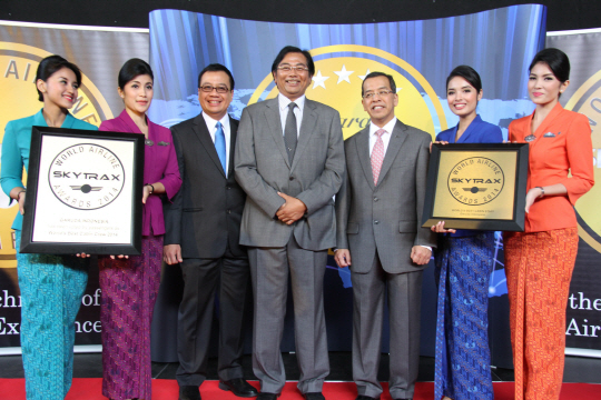 가루다인도도네시아항공이 15일(현지시각) 영국 런던 2014 판보로 에어쇼 행사장에서 열린 '2014 스카이트랙스(Skytrax) 세계 항공 대상' 시상식에서 '세계 최고의 승무원 상'을 수상했다.