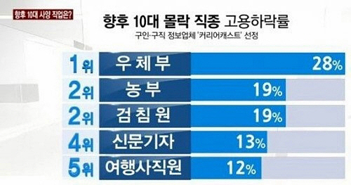10대 몰락 직종 엄청나네" 등의 반응을 보였다.