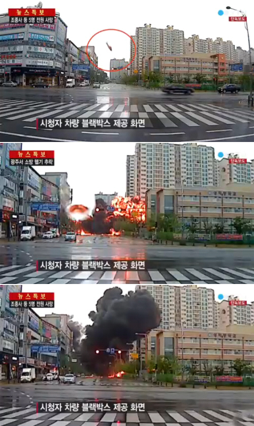 광주 도심 헬기 추락 사고 차량 블랙박스 영상과 CCTV가 공개됐다.