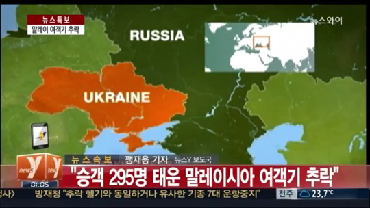 러시아 인테르팍스 통신은 17일(현지시간) 승객 295명을 태운 항공 보잉 777 여객기가 러시아 국경 근처 우크라이나에서 추락했다고 보도했다.