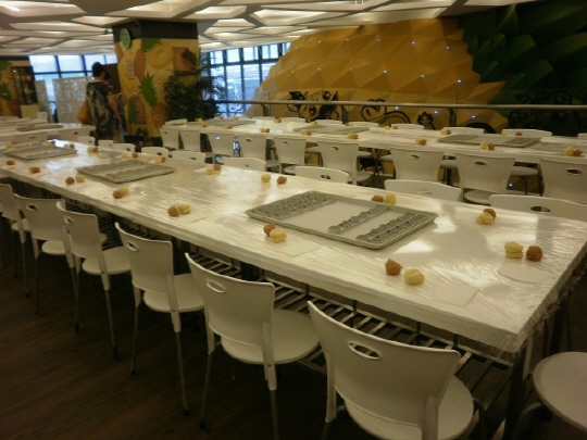 작업에 들어가기 전 손을 씻을 수 있는 세면대와 모든 테이블들은 한 팀의 체험이 끝나면 테이블을 감싸고 있는 비닐을 벗겨서 새롭게 세팅을 하여 위생을 철저하게 지키고 있다. 또한 본인이 만든 펑리수는 다른 사람과 섞이지 않도록 일일이 번호를 기재해 구워, 포장까지 해 고객에게 직접 전달해 준다.