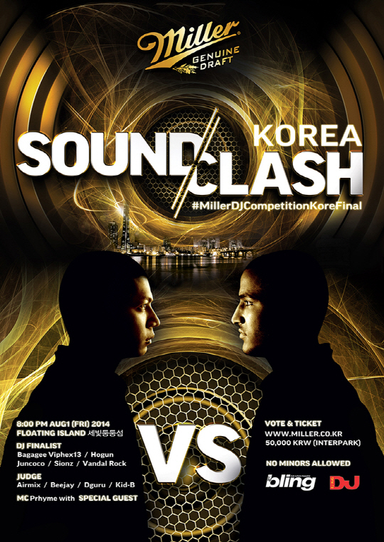 '밀러 사운드 클래쉬 코리아'엔 예선을 통해 DJ Bagagee, HOGUN, Juncoco, SIONZ, Vandal rock 등 국내 최정상급 디제이들이 참가해 화제다. 경연대회를 넘어 유명 디제잉 페스티벌을 방불케 하는 라인업이다. 대회에 참가하는 디제이들은 파티현장에 모인 소비자들 앞에서 각자의 디제잉 실력을 선보이며 1차에서 DJ Airmix, Beejay, DGuru, Kin-B 등의 전문 디제이 심사, 2차 현장 오프라인 투표 심사를 거쳐, 3차 밀러 공식 페이스북을 통한 사전 음원 인기투표 결과의 합산치로 최종 우승자를 가린다.