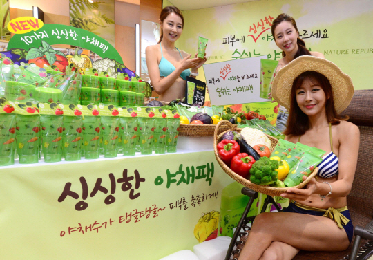 세계 청정 자연에서 찾은 뷰티 에너지를 전하는 네이처리퍼블릭(대표 정운호)은 21일 서울 명동월드점에서 10가지 싱싱한 유기농 야채수를 함유한 '숨쉬는 야채팩' 출시를 기념해 '떠나요! 피부 바캉스' 이벤트를 진행했다.