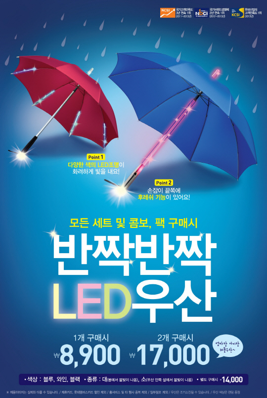 외식업계는 뒤늦게 찾아온 여름 장마를 겨냥해 이색 마케팅을 잇달아 내놨다. 롯데리아 관계자는 "수시로 비가 쏟아지는 날씨에 대비하면서도 색다르게 여름을 보낼 수 있는 방법을 고민했다"며 "빛을 발하는 LED 우산은 패션과 안전, 모두를 만족시키는 이색 아이템이 될 것"이라고 밝혔다.