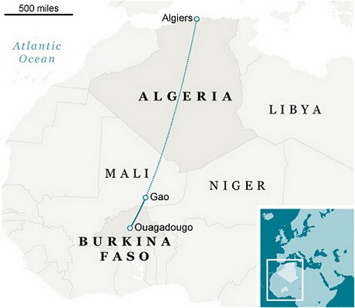 항공기는 사하라 루트를 따라 말리를 지나 알제리 국경으로 향하던 중 사라진 것으로 파악되고 있다.