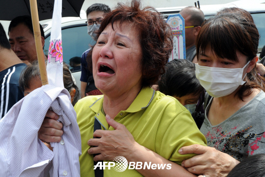 대만 항공기 비상 착륙 47명 사망 11명 부상한 가운데 희생자 가족이 오열하고 있다. ⓒAFPBBNews = News1