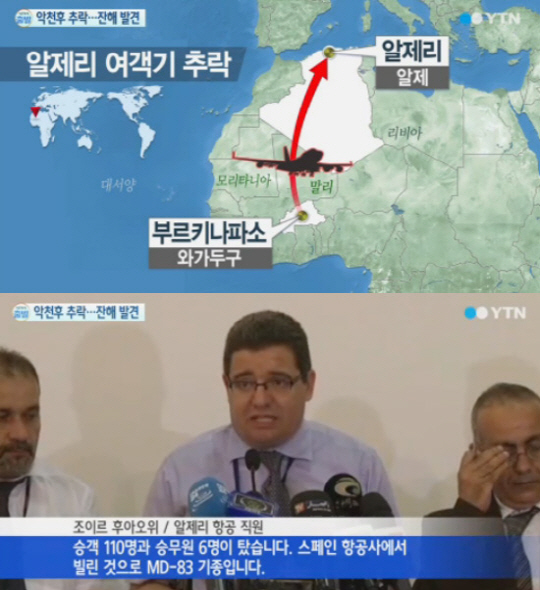 앞서 알제리 여객기 AH5017편은 이날 오전 부르키나파소에서 이륙한 지 50분만에 말리 중부도시 가오에서 기상 악화 속에 갑자기 연락이 끊어 졌다. 가오는 알제리 국경에서 남쪽으로 약 500km 떨어져 있다.