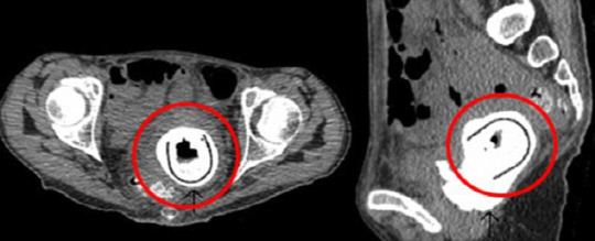 여성의 몸 안쪽에 둘레 길이가 약 12㎝에 달하는 타원형 형태의 자위 용품이 있었던 것.