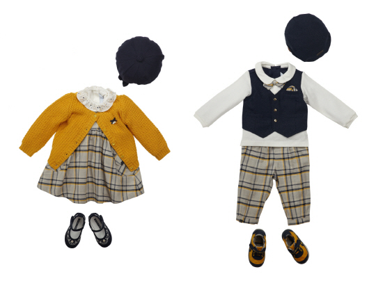 메인 여아룩은 체크 패턴을 활용한 원피스에 쟈가드 조직의 고급스러운 가디건으로 멋스러움을 연출했다. 펄 느낌이 살아있는 원단에 화이트자수로 포인트를 준 구두와 자개로 포인트를 준 베레모로 유럽피안 룩을 완성시켰다. 메인 남아룩은 조끼를 덧입은 듯한 정장 상하복에 베레모와 퀼팅 운동화로 꼬마신사 느낌을강조했다. 해당 의상은 돌잔치 및 다양한 행사용 의상으로도 적합하다.