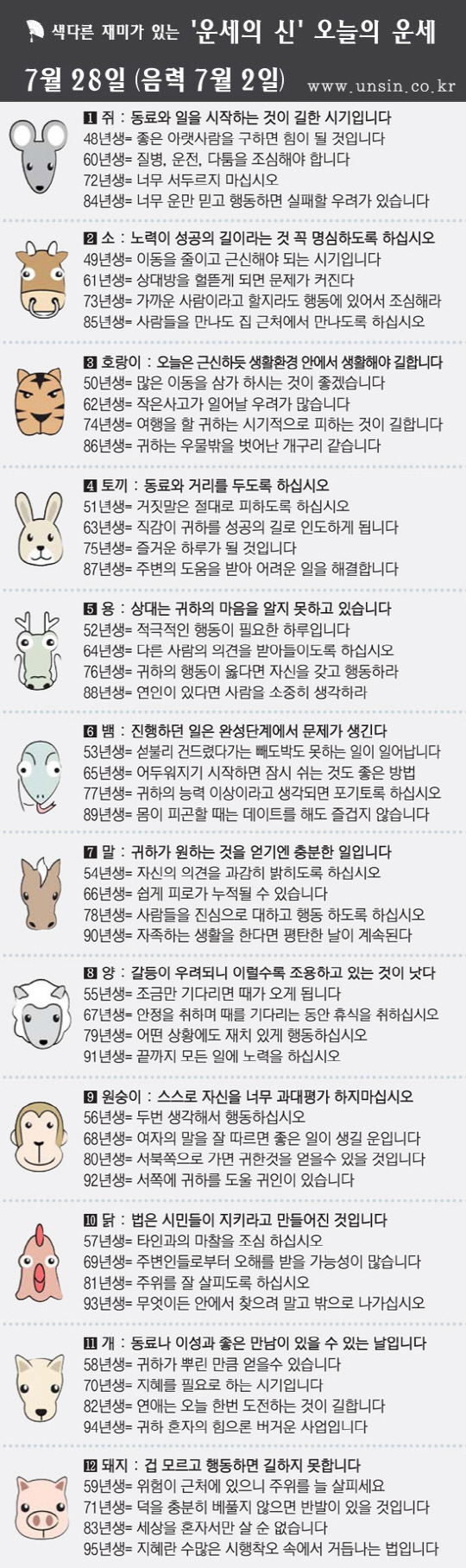[직장인을 위한 오늘의 운세] 2014년 7월 28일 월요일(음력 7월 2일)