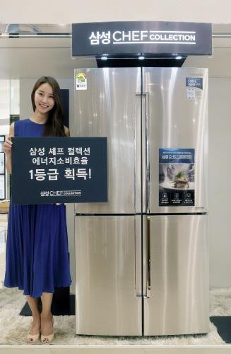 삼성전자가 29일 수퍼 프리미엄 냉장고 '셰프컬렉션'의 에너지 소비효율 1등급 신제품을 출시하며 업계 최초로 1,000리터(ℓ) 이상 대용량 고효율 냉장고 시장을 열었다.