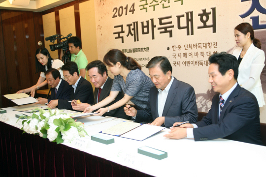'2014 국수산맥 국제바둑대회' 조인식이 29일 서울 소공동 웨스틴조선호텔 2층 라일락룸에서 열렸다.