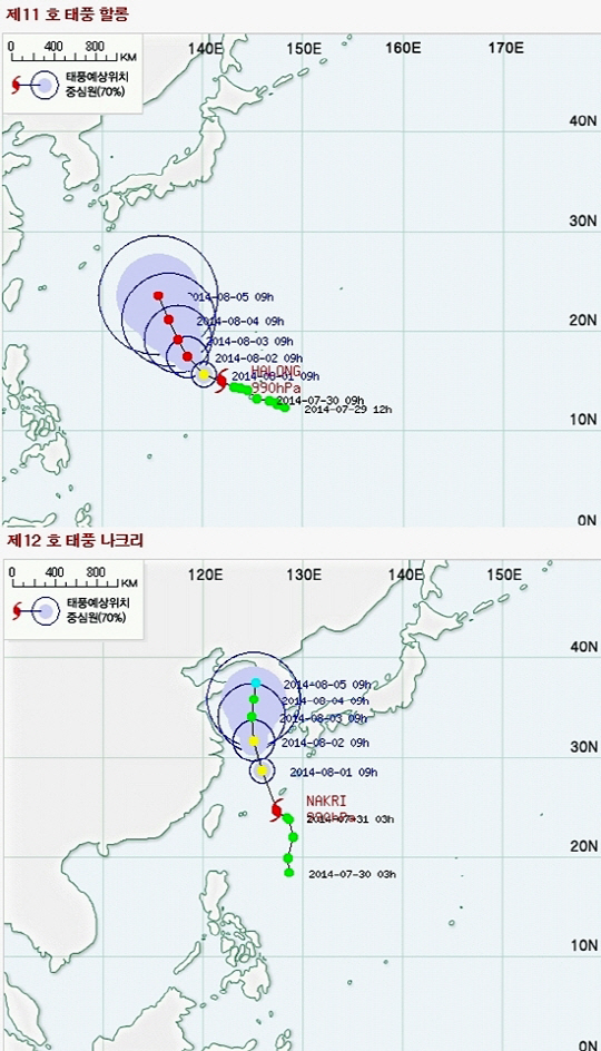 태풍 할롱-나크리 경로 정말 무섭네", "