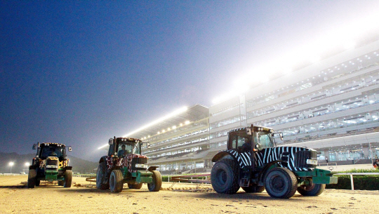 // 사진은 노을경마가 시행된 27일 서울경마공원에서 동물 트랙터가 경주로를 정비하고 있는 모습. //