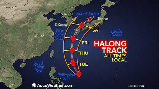 제 11호 태풍 '할롱'은 4일 오후 괌 서북서쪽 약 1500㎞ 부근 해상을, 5일 오후 일본 오키나와 남남동쪽 약 800㎞부근 해상을 지나 7일 오전 3시에는 일본 오키나와 동남동쪽 270km부근 해상까지 북상할 것으로 전망된다. 이에 따라 이번 주말에는 한반도가 태풍의 직접적인 영향권에 접어들 것으로 예상된다.
